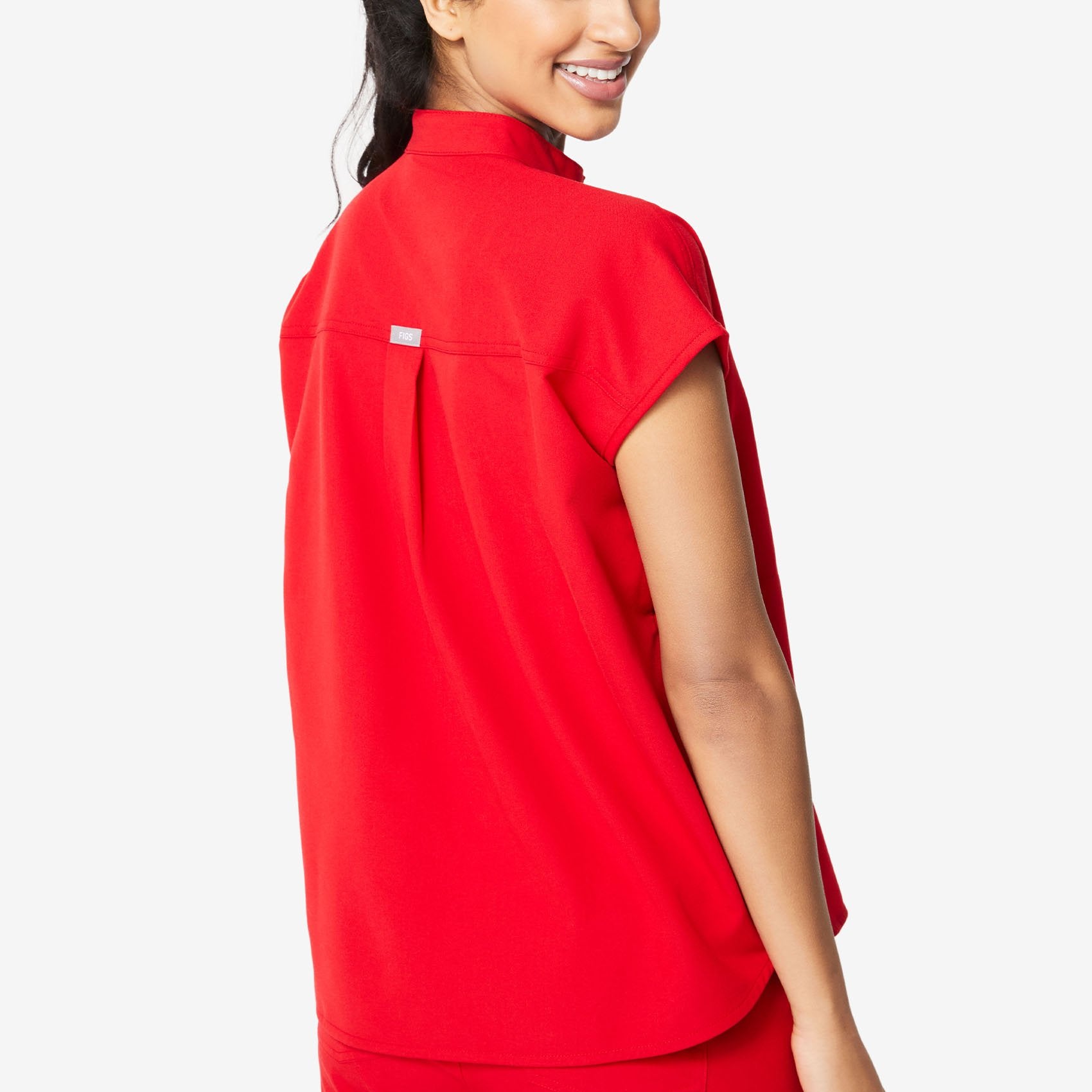women's Red Rafaela - Mandarin Collar Scrub Top